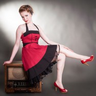 Julia kam auf Empfehlung zu uns (nichts ist bessere Werbung als zufriedene Kunden!) und hatte die 50er und Rockabilly als grobes Thema vorgegeben. Ein wenig überrascht war ich schon, als sie mit einer kompletten Autoladung an Requisiten und Klamotten vorfuhr. Die Diele stand erst mal voll mit zwei alten Radios, einem Bohner, einem Staubsauger aus dem Jahr 1928 (das zähe Luder funktionierte noch!), einem Stuhl, einem alten Koffer, diversen alten Persil- und anderen Dosen und Eimern… und noch viel, viel mehr wirklich lustigem Zeugs. So ein engagiertes Model ist der Traum jedes Fotografen!